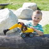 Include una cabina apribile con la figurina del conducente, che stimola la fantasia e lo sviluppo della motricità fine. L’utile blocco della sovrastruttura impedisce la rotazione involontaria durante la guida o la manipolazione. L’escavatore è fornito in una confezione regalo, perfetta come dono per i piccoli costruttori.