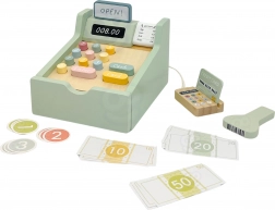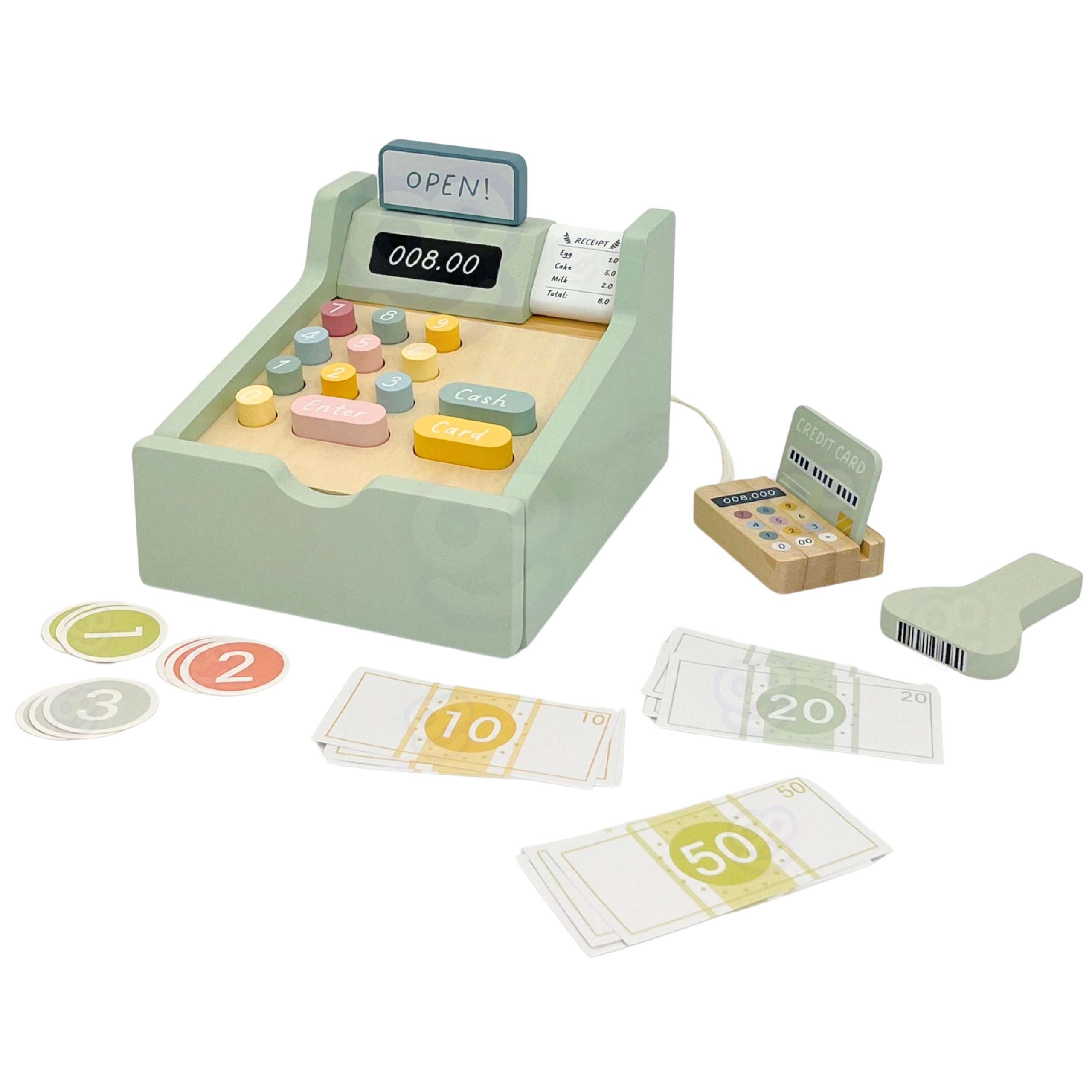 La cassa in legno WOOPIE GREEN è il giocattolo ideale per bambini dai 3 anni che amano giocare al negozio, al bar o al ristorante. Grazie agli elementi funzionali, come il cassetto portadenaro estraibile, lo scanner di codici a barre e il lettore di carte di pagamento, i bambini imparano le basi del pagamento e della gestione del denaro in modo naturale e divertente.