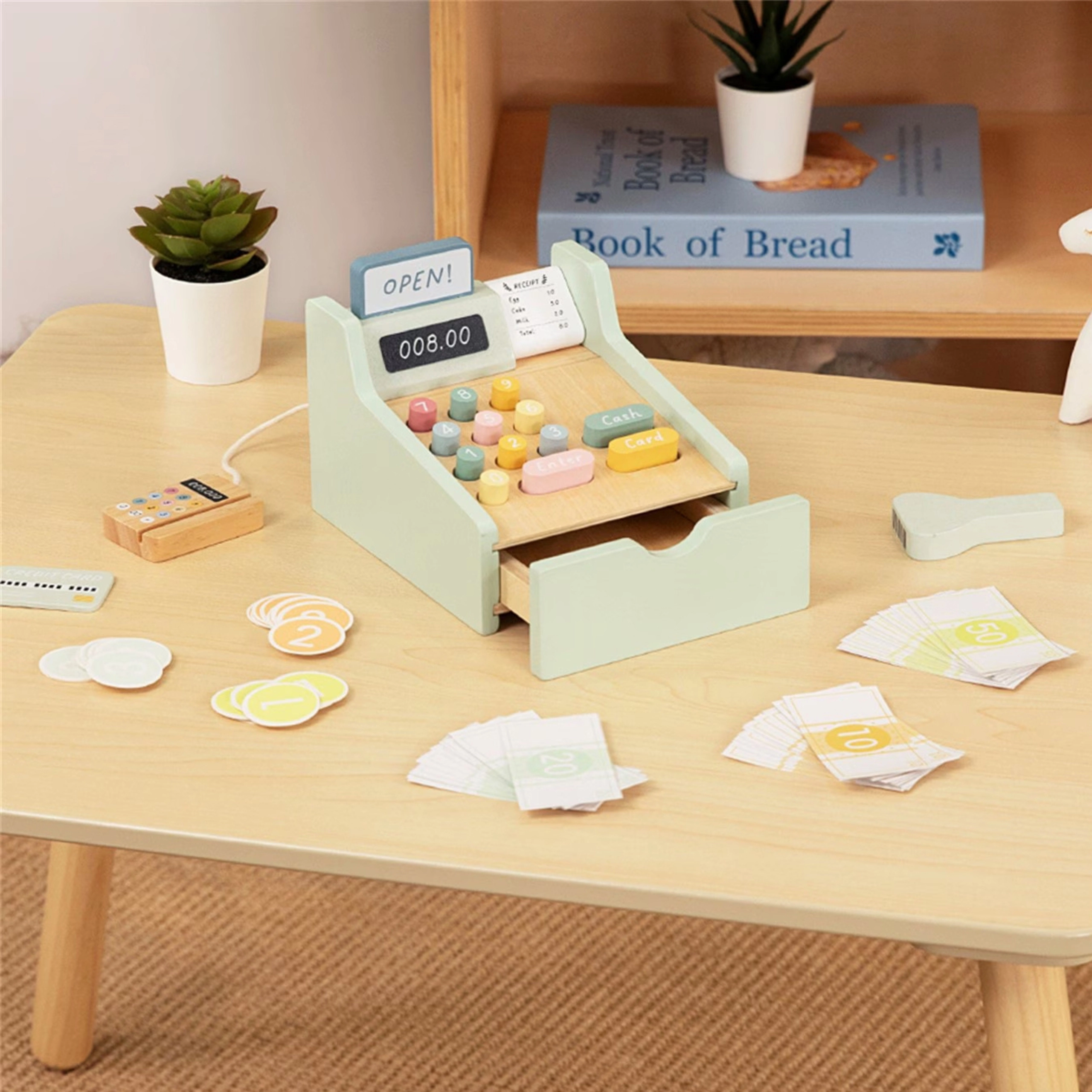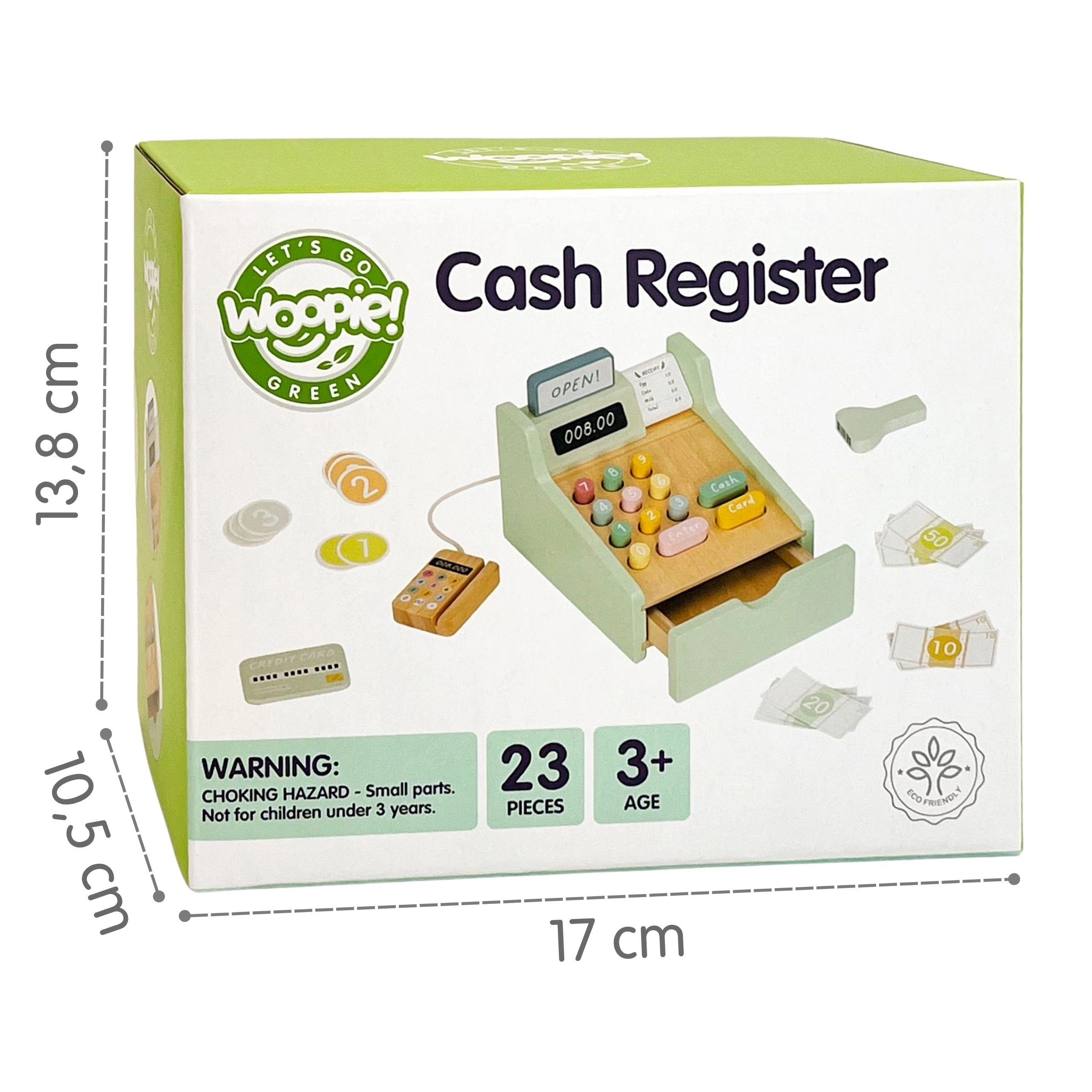 Trasforma l’angolo dei giochi in un vero negozietto con questa bellissima cassa in legno WOOPIE GREEN. I colori pastello, il legno di qualità e i ricchi accessori favoriscono il gioco creativo, il calcolo e lo sviluppo della motricità fine. Inclusi scanner, lettore di carte, carta di pagamento, banconote e monete per un gioco realistico da negozio.