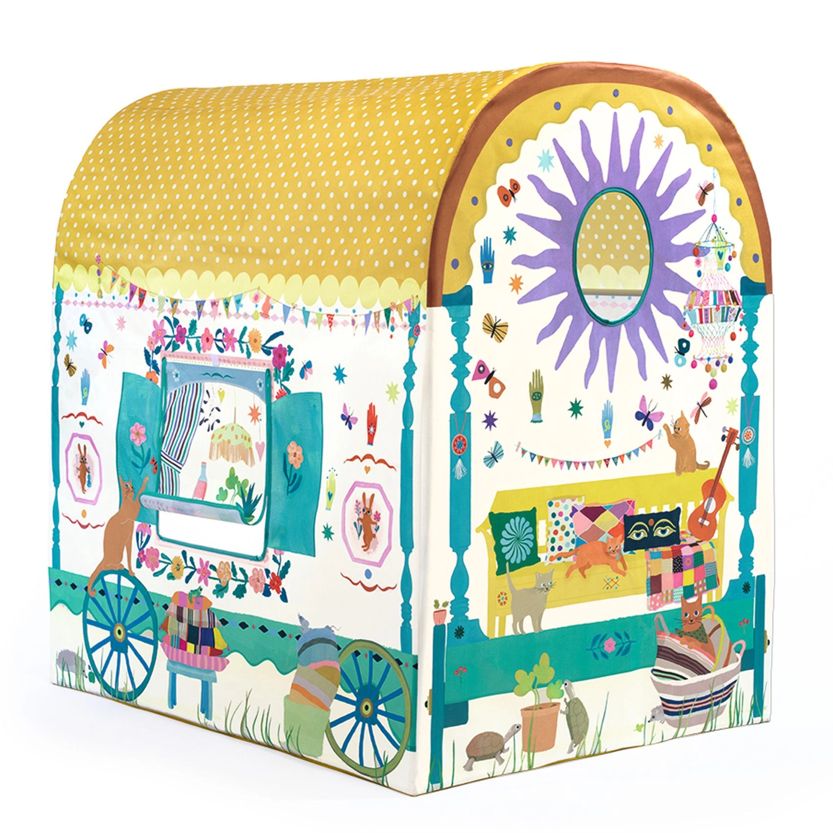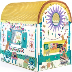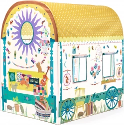 La graziosa tenda da gioco per bambini a forma di caravan trasforma la stanza in un rifugio magico per la fantasia. Ha finestre e porta richiudibili, una struttura leggera e stabile e illustrazioni colorate con animaletti che catturano subito l’attenzione dei bambini.