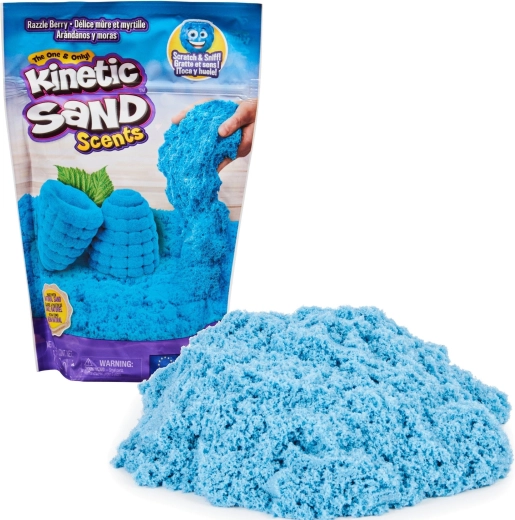 La Kinetic Sand blu con profumo di mirtillo unisce la modellabilità a un aroma piacevole per un divertimento e un relax ancora maggiori.