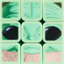 La classica griglia 3x3 con stampa compone il volto di Grogu una volta risolta. Ideale per allenare la logica e per il divertimento.