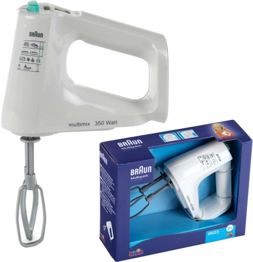 Realistico frullatore manuale per bambini con licenza BRAUN del marchio KLEIN che farà felici tutti i piccoli cuochi. Offre fruste rotanti, un fedele effetto sonoro e una funzione di sicurezza che arresta la rotazione al contatto. Ideale per imitare la cucina in sicurezza a casa. Senza confezione originale.