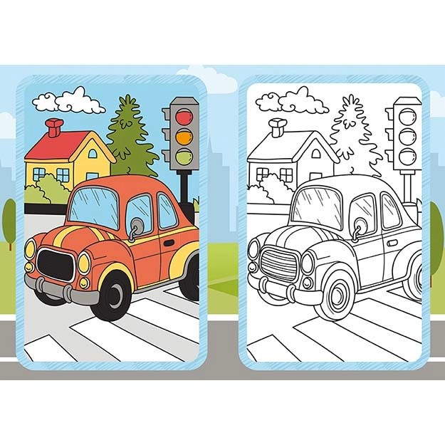 Divertenti album da colorare con soggetti di mezzi di trasporto faranno felici i piccoli artisti dai 3 anni in su. Contengono 9 immagini in bianco e nero da colorare e 9 modelli a colori per una facile ispirazione. Il pratico formato 210 × 150 mm entra nello zainetto ed è ideale per i viaggi.