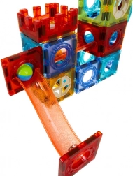 I pannelli trasparenti si uniscono saldamente grazie a magneti forti, così torri, ponti e rampe mantengono la forma e il gioco scorre senza cadute inutili.