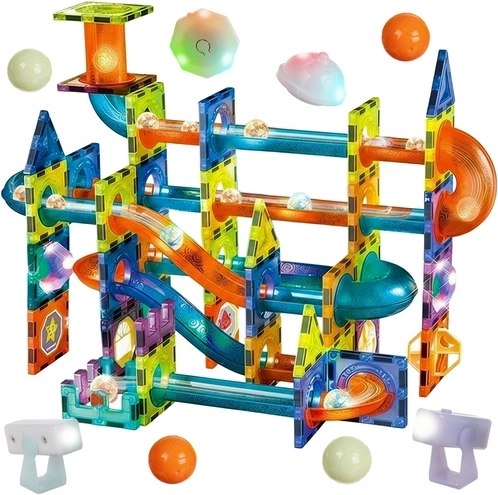 I mattoncini magnetici con pista a biglie permettono ai bambini di costruire torri, ponti e discese a spirale e di seguire le biglie mentre sfrecciano in tunnel trasparenti. Il solido collegamento magnetico garantisce la stabilità delle costruzioni senza crolli inutili, mentre gli elementi LED trasformano ogni struttura in uno spettacolo di luci. Inclusa anche una guida a colori passo dopo passo che facilita l’avvio rapido e ispira nuove idee.