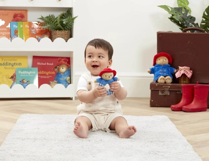 Questo morbidissimo sonaglio ispirato all’orsetto PADDINGTON con cappello rosso e cappottino blu è il giocattolo ideale per il tuo bebè. Grazie al materiale morbido si tiene comodamente anche dalle manine più piccole e sostiene in sicurezza lo sviluppo tattile e uditivo.