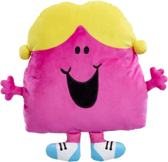 Questo grande cuscino peluche LITTLE MISS CHATTERBOX incanta con i suoi colori vivaci: corpo rosa, capelli gialli raccolti in codini e “scarpette” blu e bianche. La superficie morbida invita agli abbracci e offre comfort ai bambini durante la lettura, il riposo e l’addormentamento serale.