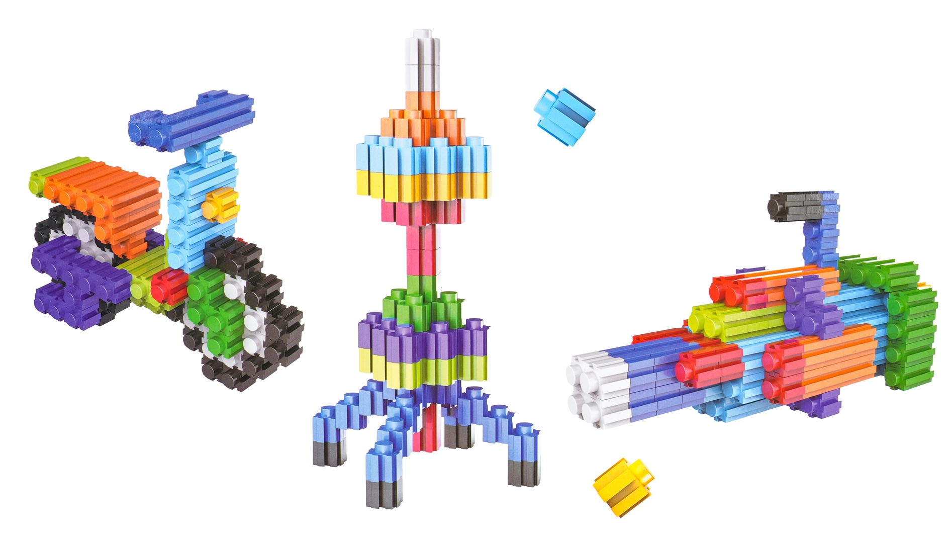• Elementi colorati e modulari per costruire vari modelli 3D