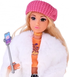 La stilosa bambola ANLILY in look invernale farà felice ogni piccolo amante della moda. Ha lunghi capelli chiari, arti completamente snodati e un ricco set di accessori per un gioco creativo. Non mancano il morbido pellicciotto bianco, il berretto rosa, gli occhiali da sole a forma di cuoricini, la borsetta, il bicchierino con bevanda e il selfie stick – tutto per scenette da influencer e foto senza schermo.