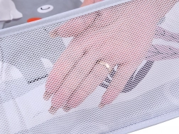 Le spondine in rete creano un ambiente arioso e ben visibile, in cui giochi e palline restano all'interno. Il bebè è al sicuro e il genitore mantiene sempre il contatto visivo diretto.