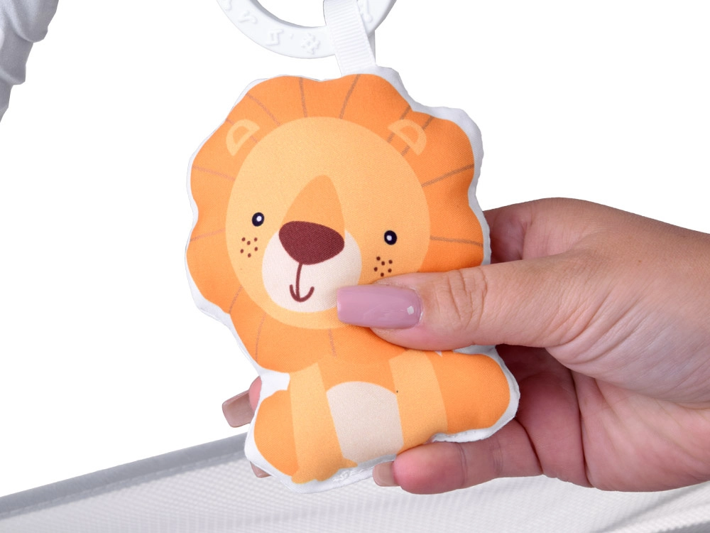 - giochi sospesi inclusi: specchietto, sole con nuvoletta e animaletti (leone, elefante, scimmietta)