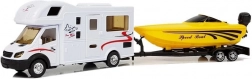 Vivi avventure estive con un set realistico di caravan e barca gialla su rimorchio in scala 1:48. Il caravan ha un meccanismo a retrocarica: tiralo indietro e guardalo partire in avanti. I dettagli degli interni e il rimorchio removibile con barca stimolano il gioco creativo e garantiscono divertimento prolungato per bambini da 3 anni.