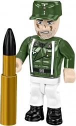 Incluse le minifigure del comandante e del servente con accessori (Luger P08, binocolo, granata) e una targhetta da collezione con il nome del modello.