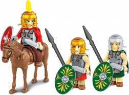 - 3 figure: 2 fanti (cohortes) con nuovi scudi ovali e 1 cavaliere con spada e scudo rotondo parma.