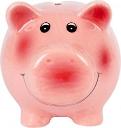 Il salvadanaio è realizzato in ceramica lucida, resistente e facile da mantenere. Il tappo in gomma sul fondo consente un utilizzo ripetuto senza dover rompere il maialino: il risparmio può così ricominciare ancora e ancora.