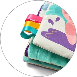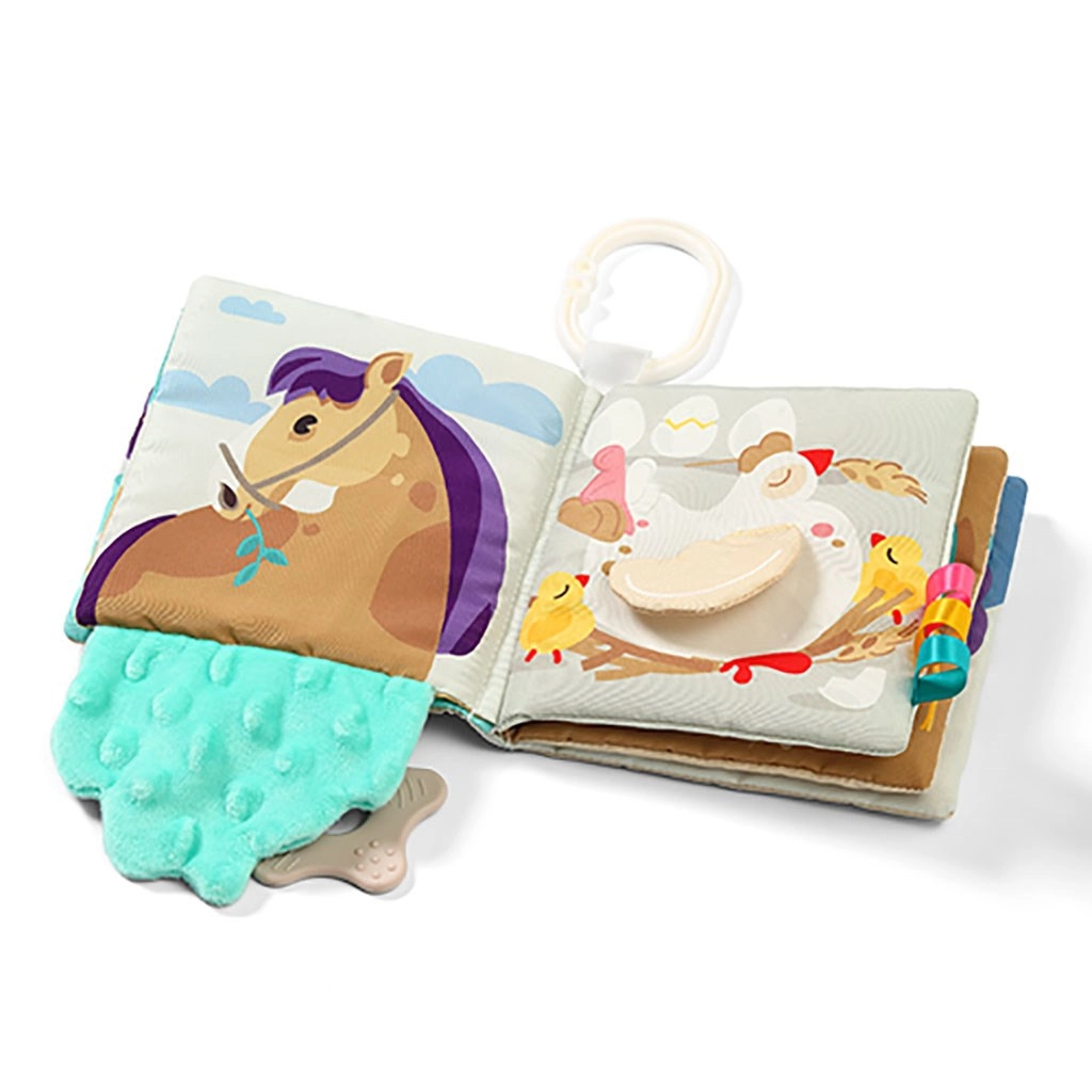 Questo morbido libretto sensoriale FARM di Baby Ono è progettato per stimolare naturalmente vista, tatto e udito. Le illustrazioni a contrasto a tema fattoria, le pagine fruscianti e le superfici diversificate invogliano il bambino a esplorare, mentre il massaggiagengive a stellina allevia le gengive irritate.