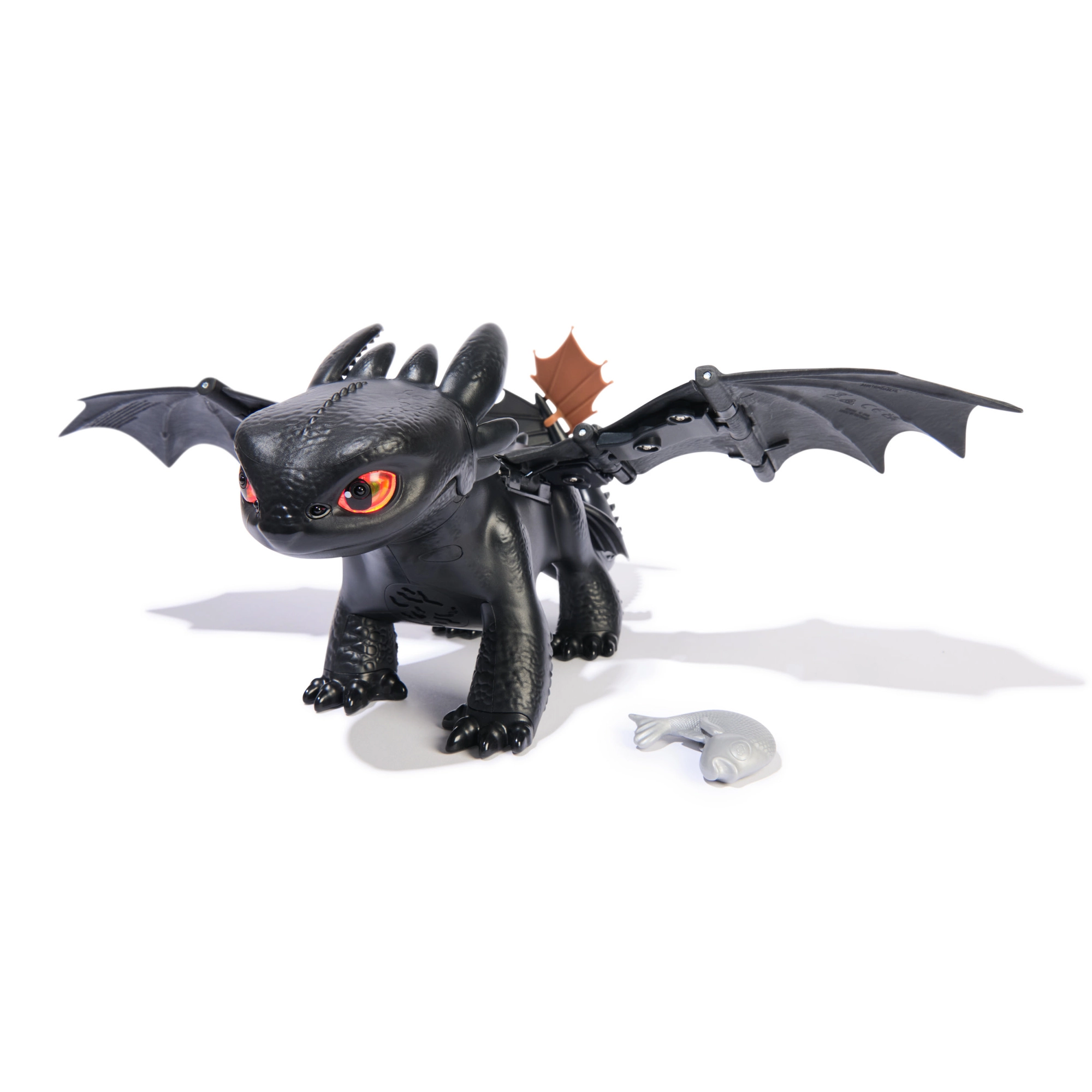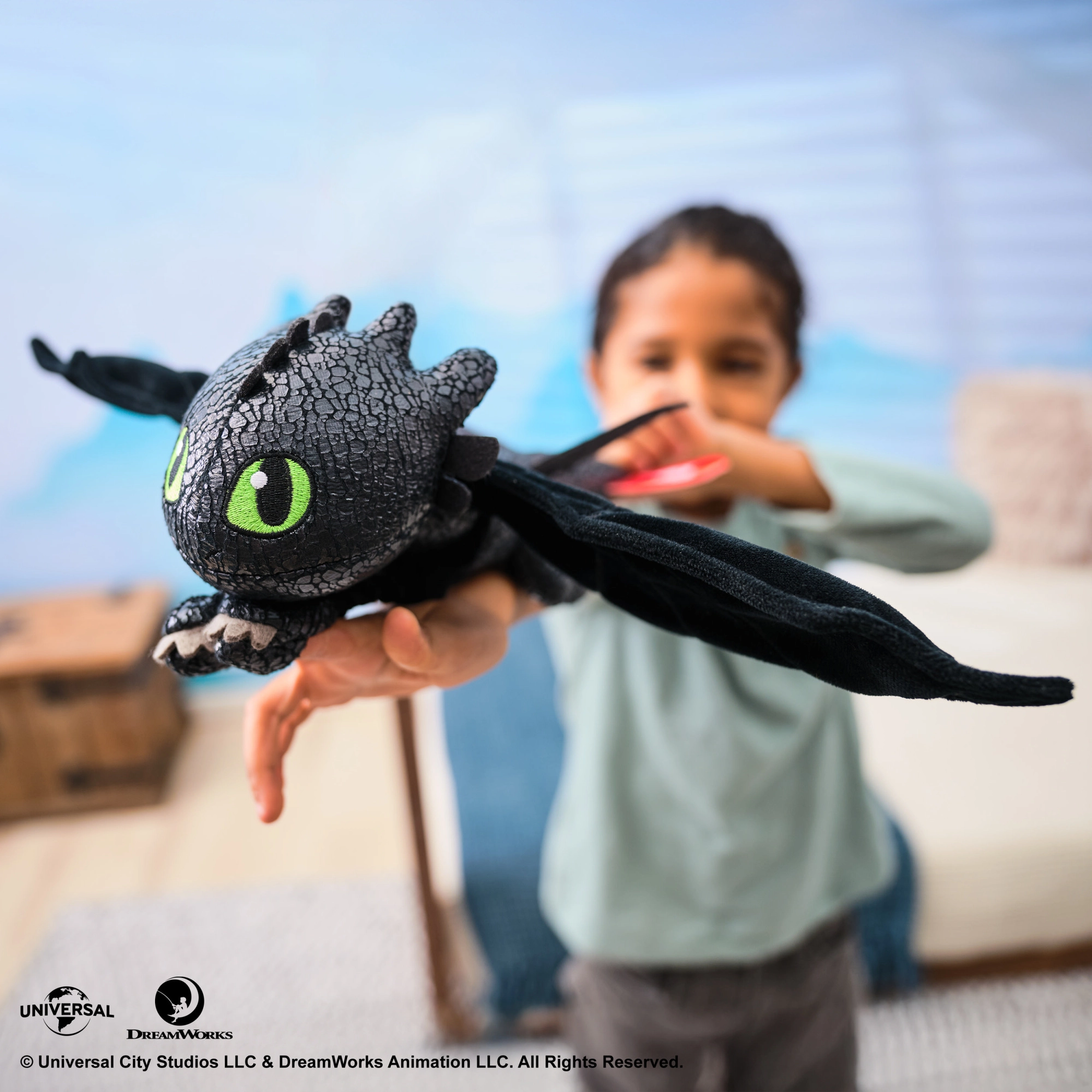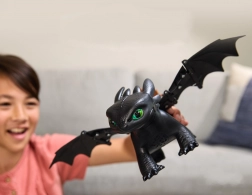 La figure offre 5 personalità uniche e più di 60 reazioni sonore e luminose. Sbloccherai mini-giochi come “keep away” (caccia al pesce), “follow me” (seguimi) e “chicken”. Al culmine dell’amicizia mostra l’attacco al plasma: gli occhi si illuminano di blu e l’apertura alare fino a 51 cm riempie la scena. Solleva il drago in aria e sentirai suoni di volo realistici – perfetto per il gioco creativo e per rivivere le scene del film.