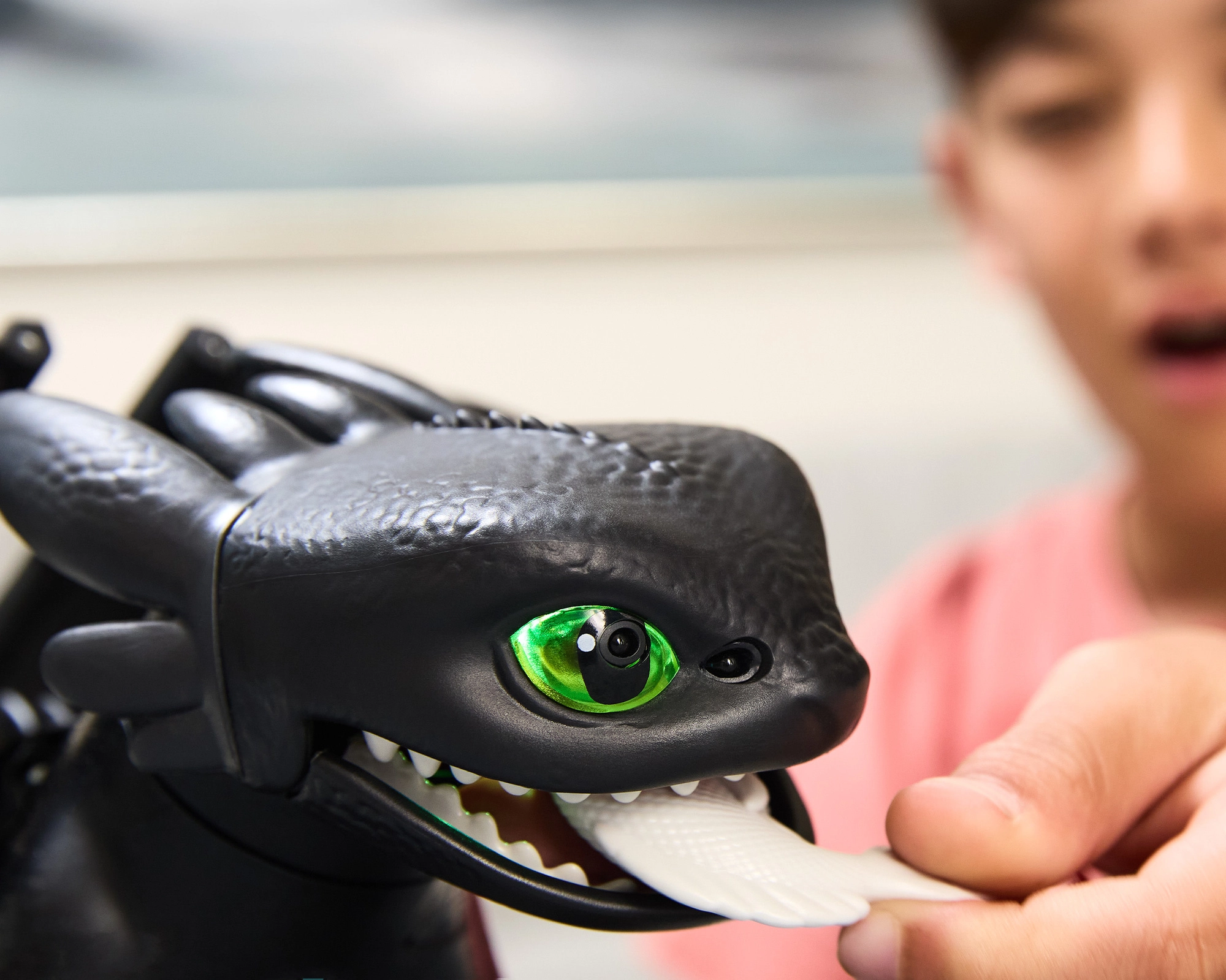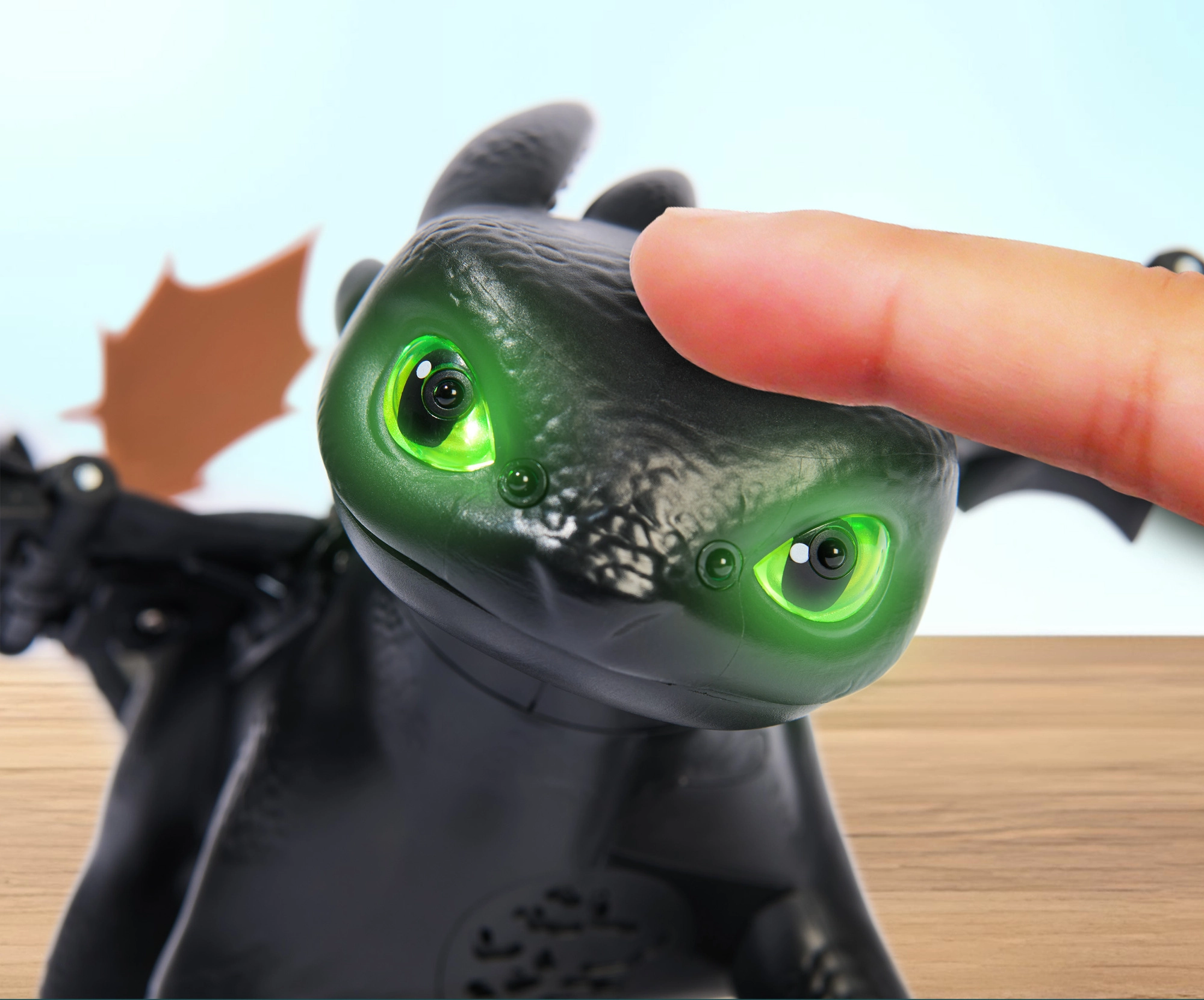 Gli occhi interattivi si illuminano e, al culmine dell’amicizia, il drago sfodera un spettacolare attacco al plasma – il finale perfetto di ogni allenamento.