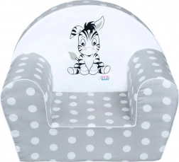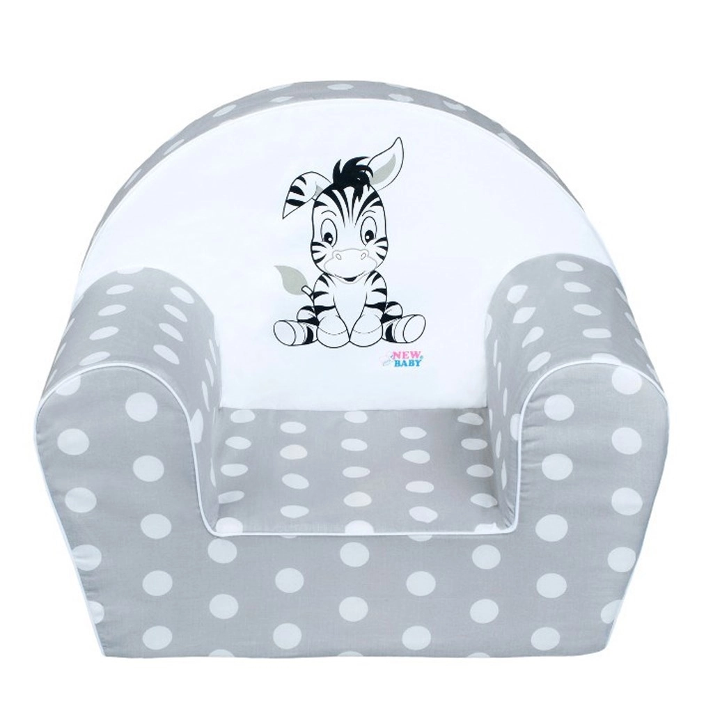La comoda poltroncina per bambini New Baby Zebra in colore grigio a pois offre leggero comfort in schiuma, rivestimento in cotone sfoderabile e lavabile e un dolce motivo zebra. Ideale per la cameretta come prima seduta indipendente.