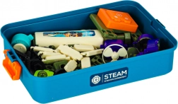Il set include 12 solide schede attività con difficoltà progressiva. I bambini possono seguire le istruzioni oppure creare costruzioni proprie. La pratica scatola con coperchio e divisori assicura che tutti i 58 pezzi siano sempre ben organizzati.