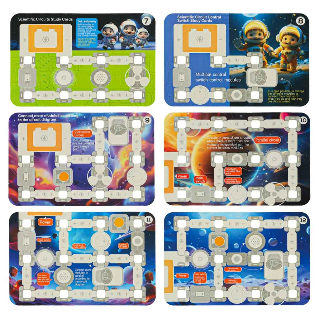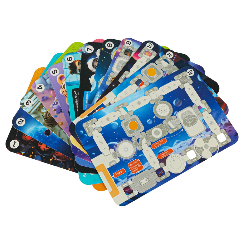 Schede colorate con diagrammi e compiti guidano i bambini passo dopo passo, dai progetti semplici ai collegamenti più complessi. Ottime per lo studio a casa e per i laboratori scolastici.