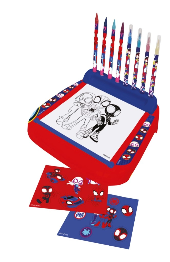 Scopri il divertente supporto creativo con i motivi di SPIDEY, che rende il colorare un’attività comoda e ordinata. Grazie al rotolo di disegni, i bambini hanno sempre nuovi soggetti da colorare, mentre il supporto mantiene la carta in posizione e l’area di lavoro pulita.