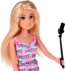 La bambola ha ginocchia e gomiti articolati, così da posare facilmente durante la guida, gli scatti fotografici e altre scenette. L’abito moderno FUNKY e le sneakers bianche sono completati da un accessorio alla moda: lo smartwatch.