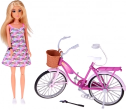 Bambola ca. 30 cm, abito, scarpe, orologio, smartphone, bastone per selfie, bicicletta con cestino e supporto per la bambola