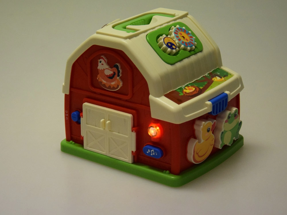 Il pulsante con la nota avvia allegre melodie, un interruttore speciale accende la lucina e premendo sugli animali si sentono realistici suoni della fattoria.