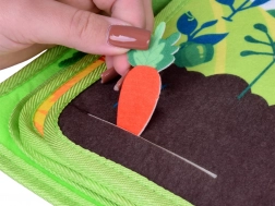 Sollevare le finestrelle, estrarre le carote dall’“orto”, applicare i dischetti con velcro e allacciare nella stalla: tutto pensato per allenare le dita e la coordinazione.