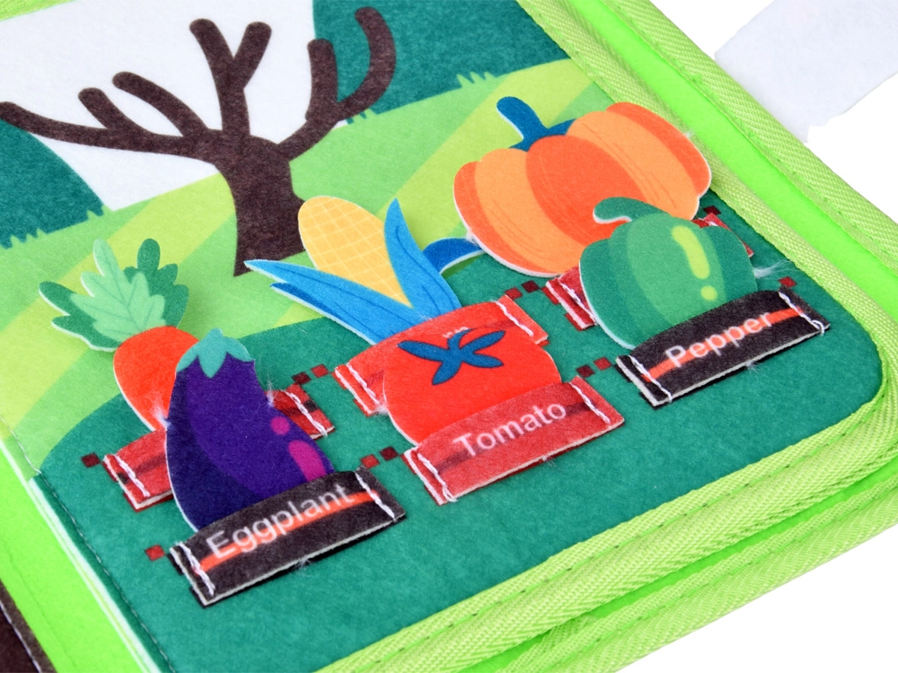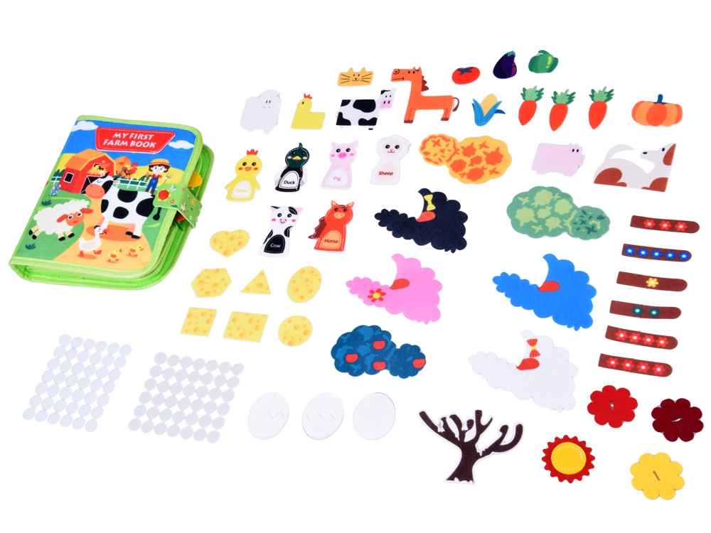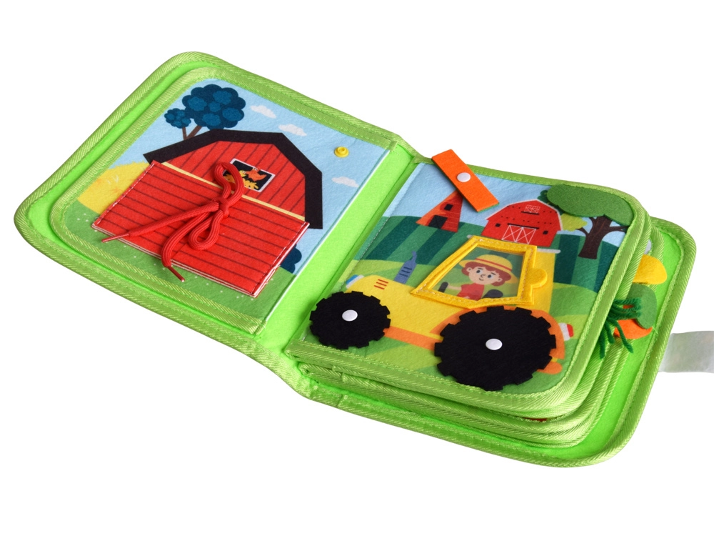Scopri il tenero mondo della fattoria con un morbido quiet book in feltro per i più piccoli. Grazie a pagine interattive, pezzi rimovibili con velcro, finestrelle e elementi mobili, i bambini allenano la motricità fine, la fantasia e il vocabolario. Leggero, sicuro e ideale per i viaggi.