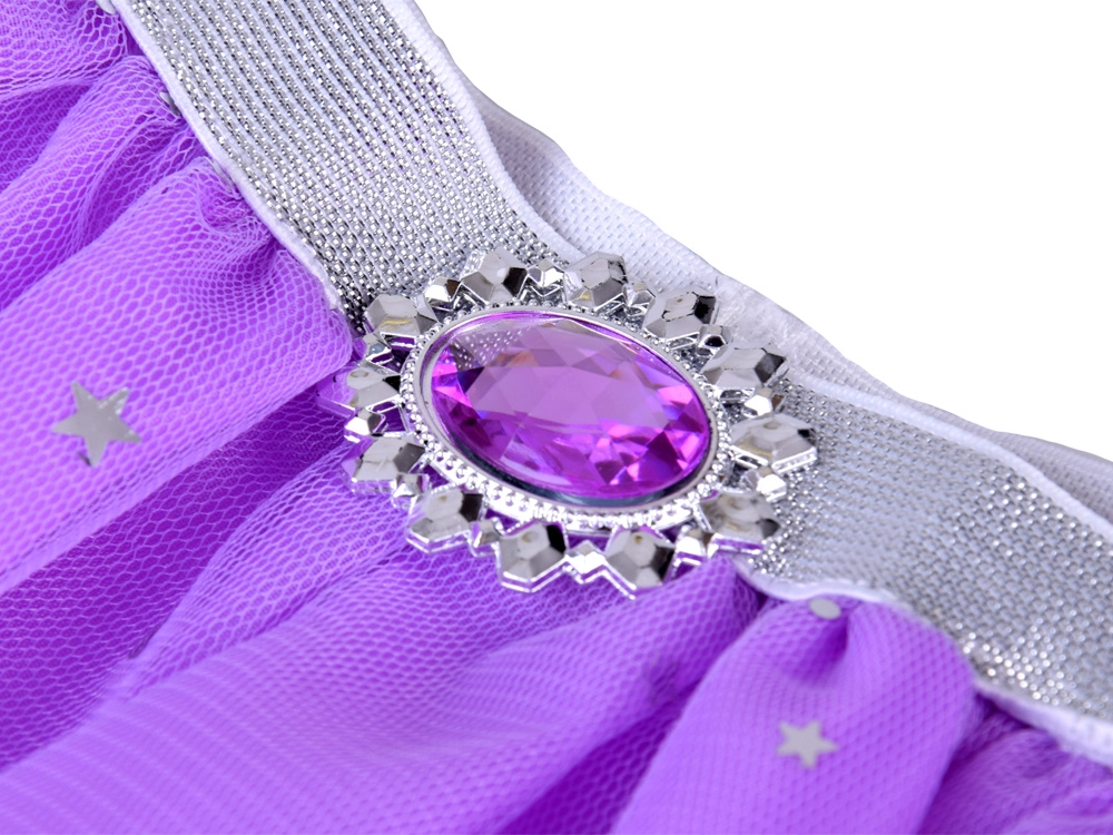 Trasformate ogni travestimento in un ballo da fiaba. Il tutù viola con scintillanti stelle e lune incanta a prima vista, mentre la corona argentata, la collana, l’anello e gli orecchini pendenti con pietre viola completano un look regale. La vita elastica garantisce comfort e facilità di vestizione.