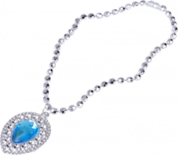 Tiara argentata con pietre blu e collana coordinata con pendente a goccia per donare a ogni travestimento un tocco fiabesco.