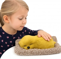 Questo labrador addormentato, lavorato nei dettagli, riproduce fedelmente un cucciolo che riposa nella sua cuccia. La superficie in materiale morbido che ricorda il pelo appare realistica ed è piacevole al tatto. Le dimensioni compatte si adattano a una mensola, alla scrivania o alla cameretta dei bambini.