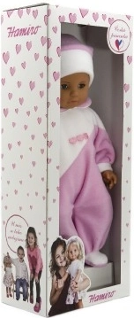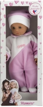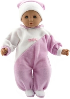 Un dolcissimo bebè lungo 50 cm farà felice ogni piccola mamma. Ha un morbido corpo in stoffa per coccole piacevoli ed è vestito con una tutina rosa e bianca. Ideale per giocare alla cura e sviluppare fantasia e motricità fine.