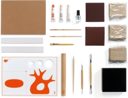 Tutto è riposto in modo ordinato per avere ogni strumento a portata di mano – dalle spatole e anse per modellare, al rullo, fino ai tamponi abrasivi e alla tavolozza per miscelare i colori. Il set favorisce lo sviluppo della creatività e della motricità fine nonché della pazienza, ed è una scelta perfetta per regali e progetti del weekend.