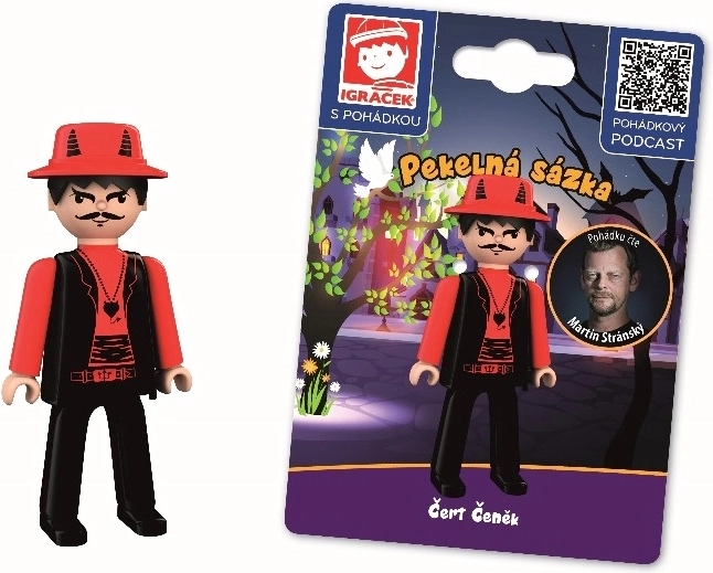 Fate conoscere ai bambini il mondo fiabesco in cui si incontrano il diavoletto Čeněk e l'angelo Adámek nella storia La scommessa infernale. La fiaba audio si riproduce facilmente scansionando il codice QR sulla card di vendita oppure la trovate all'hub www.pohadkaigracek.cz. La figurina e la storia sostengono creatività e narrazione, ideali per momenti condivisi o per il gioco autonomo.
