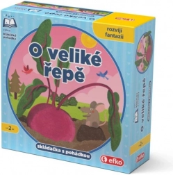 Il set per bambini La grande rapa unisce un semplice puzzle e una fiaba famosa in uno. I bambini compongono un'immagine con 9 pezzi robusti e allo stesso tempo possono leggere la storia nel libriccino incluso. Il gioco sostiene la motricità fine, la fantasia, il pensiero logico e la pazienza. Contiene testo in ceco e slovacco ed è adatto dai 2 anni.