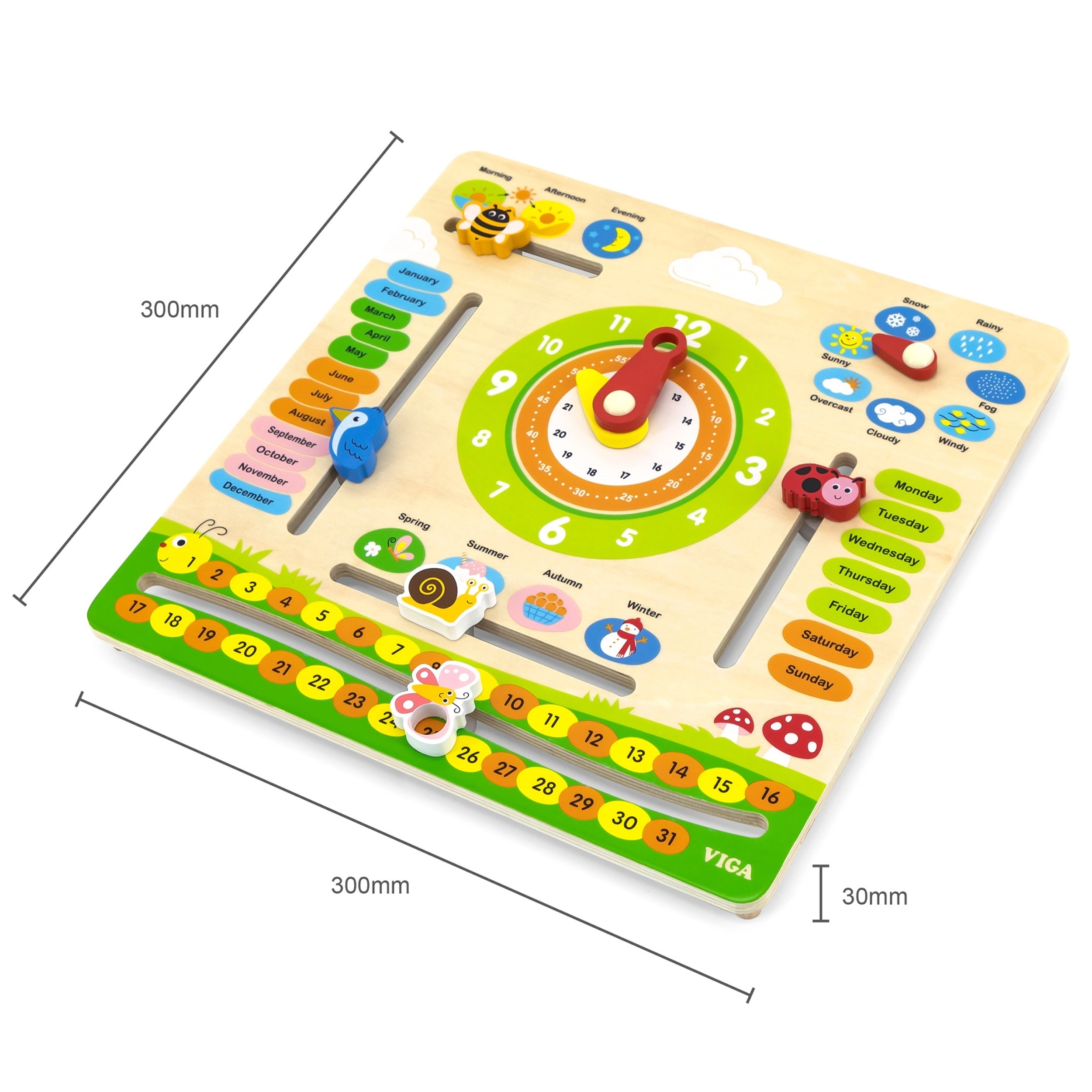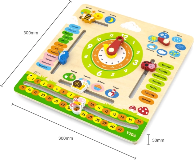 Calendario educativo VIGA è uno strumento ideale per i bambini per imparare il tempo, le variazioni meteorologiche e le stagioni. Grazie agli elementi colorati e mobili aiuta a capire quotidianamente il concetto di tempo.