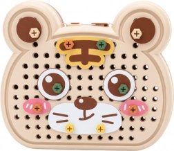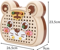 Valigetta a forma di orsetto, coperchio perforato come tavola di montaggio