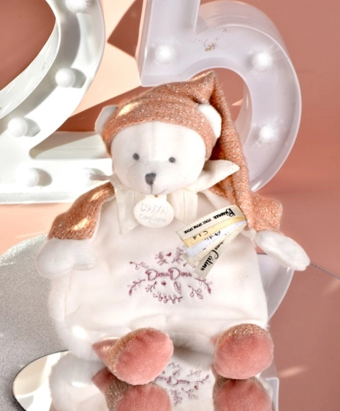 Questo delicato doudou in peluche a forma di orsetto conquista per l’aspetto dolce e la qualità delle finiture. Il cappellino rosa, le zampine morbidissime come piccole babbucce e la discreta ricamo Doudou sul pancino creano un compagno con cui il bebè amerà coccolarsi. La superficie soffice stimola i sensi e aiuta a calmare durante la nanna.