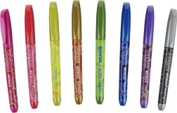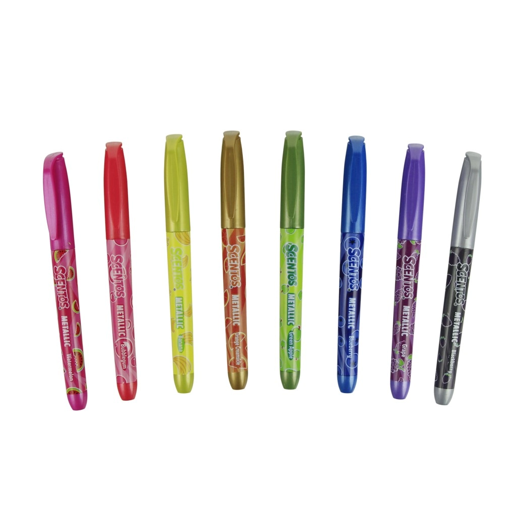 Valorizza i tuoi progetti con i pennarelli metallici SCENTOS, che uniscono colori intensi, brillantezza scintillante e piacevoli profumi fruttati. Ogni pennarello ha un corpo colorato corrispondente alla tonalità, così scegli subito il colore giusto. Il pigmento metallico risalta soprattutto su carte scure e dona alle creazioni un tocco elegante.