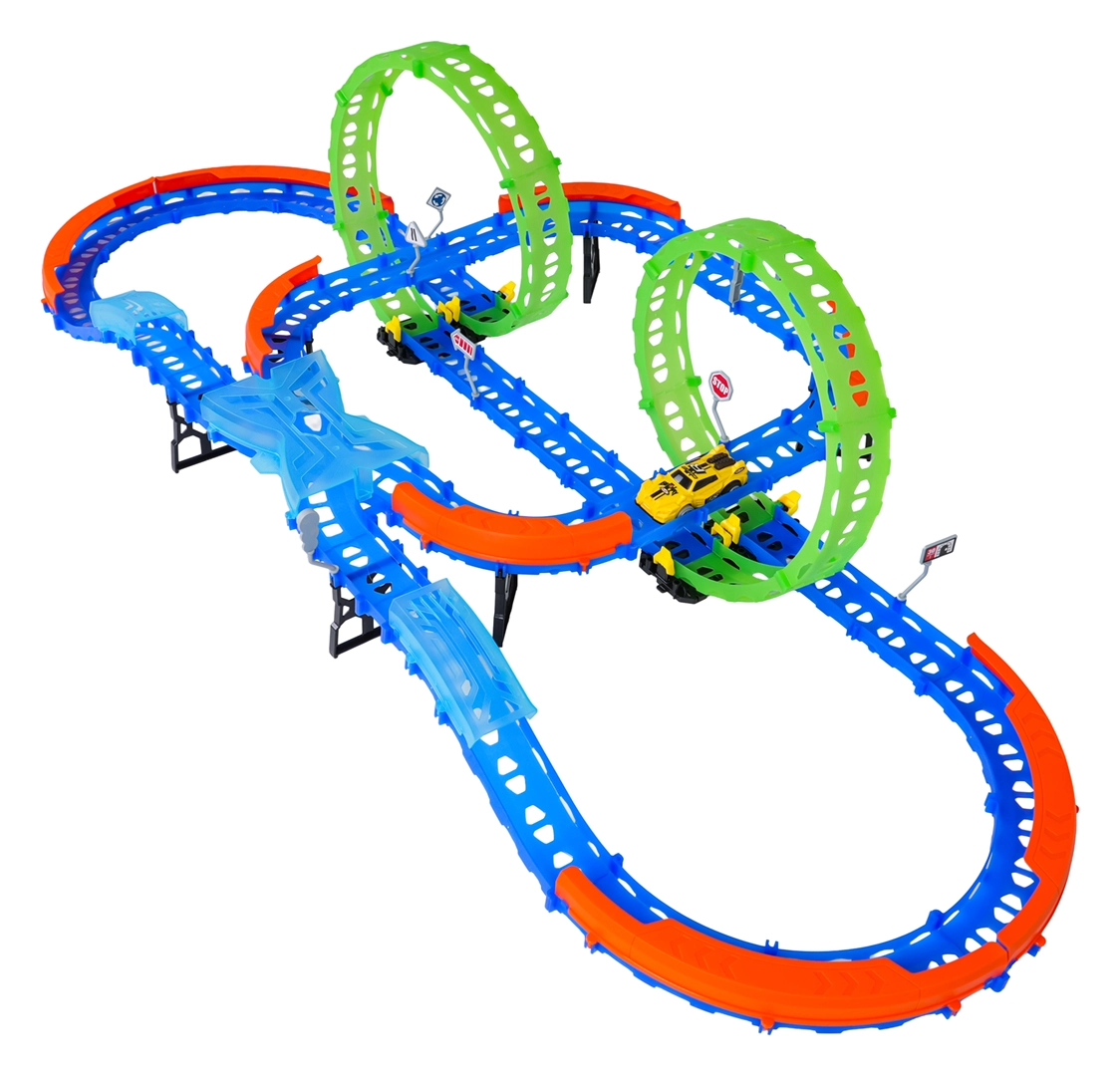 Dai il via alla fantasia con un divertente set da corsa per bambini dai 3 anni. Questa pista da corsa luminosa offre 2 loop fluorescenti a 360°, curve strette con barriere di sicurezza e una macchinina veloce con illuminazione. Grazie a 63 pezzi facili da collegare, i bambini possono costruire il proprio tracciato e godersi corse emozionanti anche al buio.