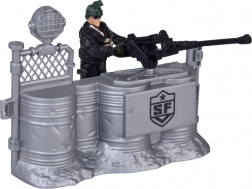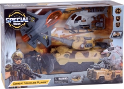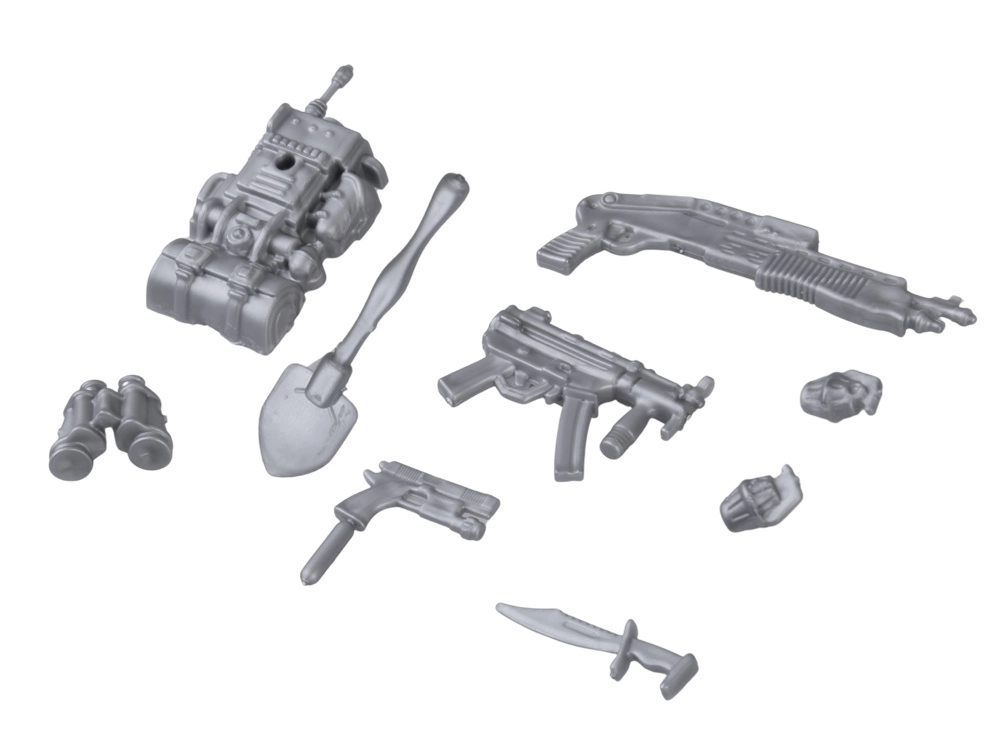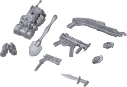 - Carro armato con lama, elicottero, caccia, minifigurina di soldato, avamposto difensivo con mitragliatrice, zaino tattico e accessori (armi, binocolo, pala ecc.).
