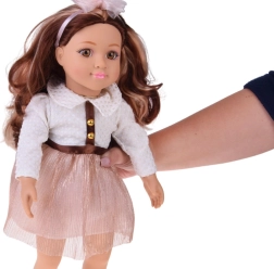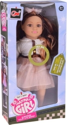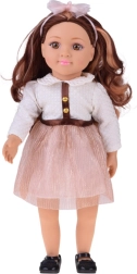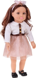 L’incantevole bambola MAY MAY GIRL si distingue per i dettagli realistici e l’alta qualità costruttiva. La maglietta bianca strutturata con bottoncini dorati, la gonna rosa brillante con cintura e la fascia con fiocco formano un elegante set fashion che stimola la fantasia e il gioco di travestimento con stile.