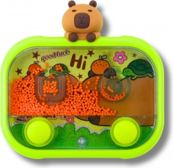 Scopri il fascino del classico gioco d’acqua in una nuova versione colorata con tema capibara. Il gioco funziona meccanicamente: basta premere i pulsanti, mettere in movimento il flusso d’acqua e guidare con precisione le biglie negli alloggi. L’illuminazione attivata premendo la capibara illumina l’interno del giocattolo e rende l’esperienza di gioco ancora più attraente, soprattutto al crepuscolo.