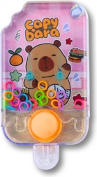 Divertente gioco ad acqua con il grazioso motivo della CAPIBARA a forma di gelato su stecco, che piacerà a bambini e adulti. Basta premere il pulsante, muovere l’acqua e cercare di infilare i colorati anelli sui piolini. Il gioco è senza batterie, compatto, leggero e ideale da portare in viaggio. Stimola la pazienza, la motricità fine e offre tanti minuti di divertimento.