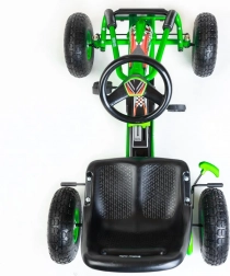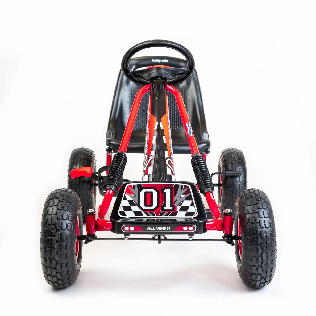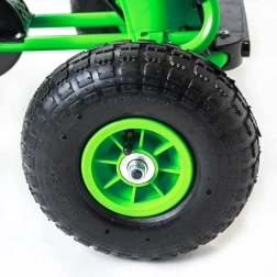 La sicurezza è al primo posto: il freno a mano agisce su entrambe le ruote posteriori, la catena è coperta e il cambio offre le modalità avanti/indietro e ruota libera. Il go-kart è conforme alle norme europee di sicurezza e, grazie alla struttura resistente, affronta le avventure quotidiane in giardino e al parco giochi.