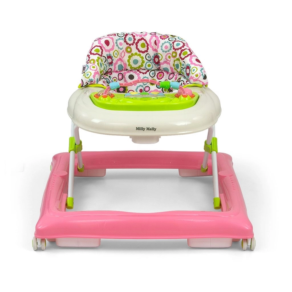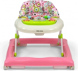 Scopri il comodo e sicuro girello per bambini MILLY MALLY Patrol Flower, che aiuta i piccoli a imparare a muoversi e a esplorare il mondo. Offre seduta regolabile in altezza, schienale morbido, pannello multimediale con luci e melodie e ruote piroettanti silenziose che non graffiano il pavimento. Grazie ai fermi in gomma e alla struttura robusta l’uso è sicuro e stabile.